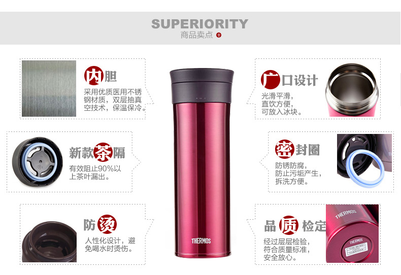 膳魔師帶茶漏真空不銹鋼保溫杯