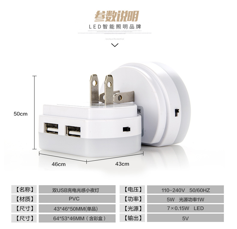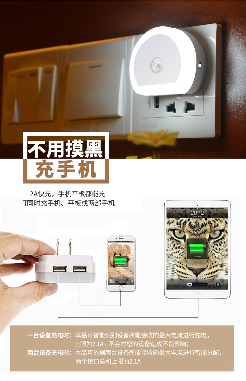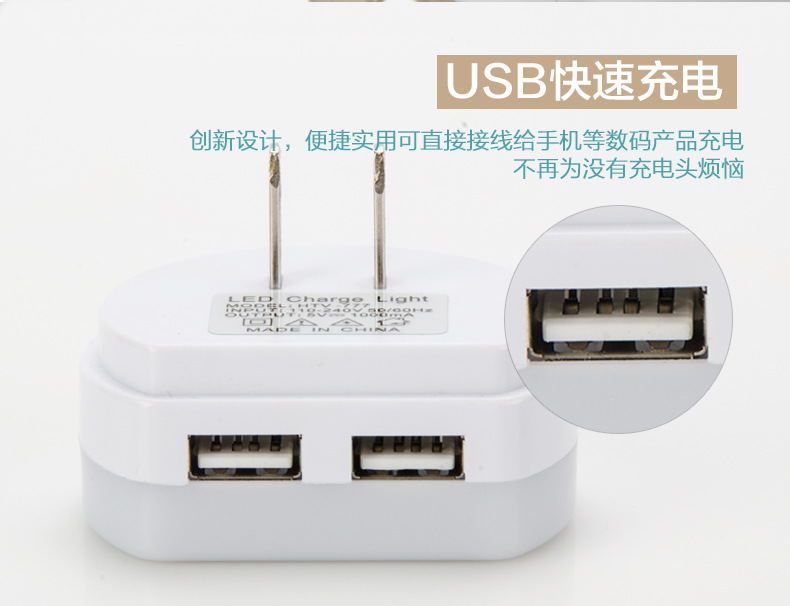 雙USB充電感應小夜燈