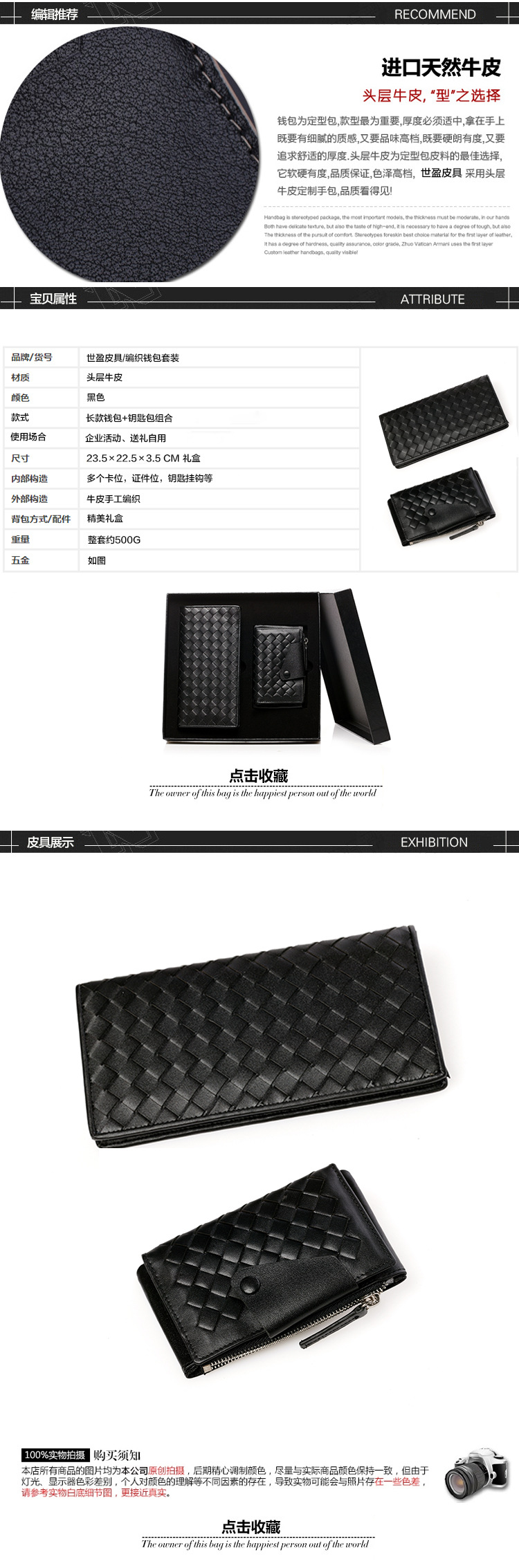 男士頭層牛皮錢包套裝