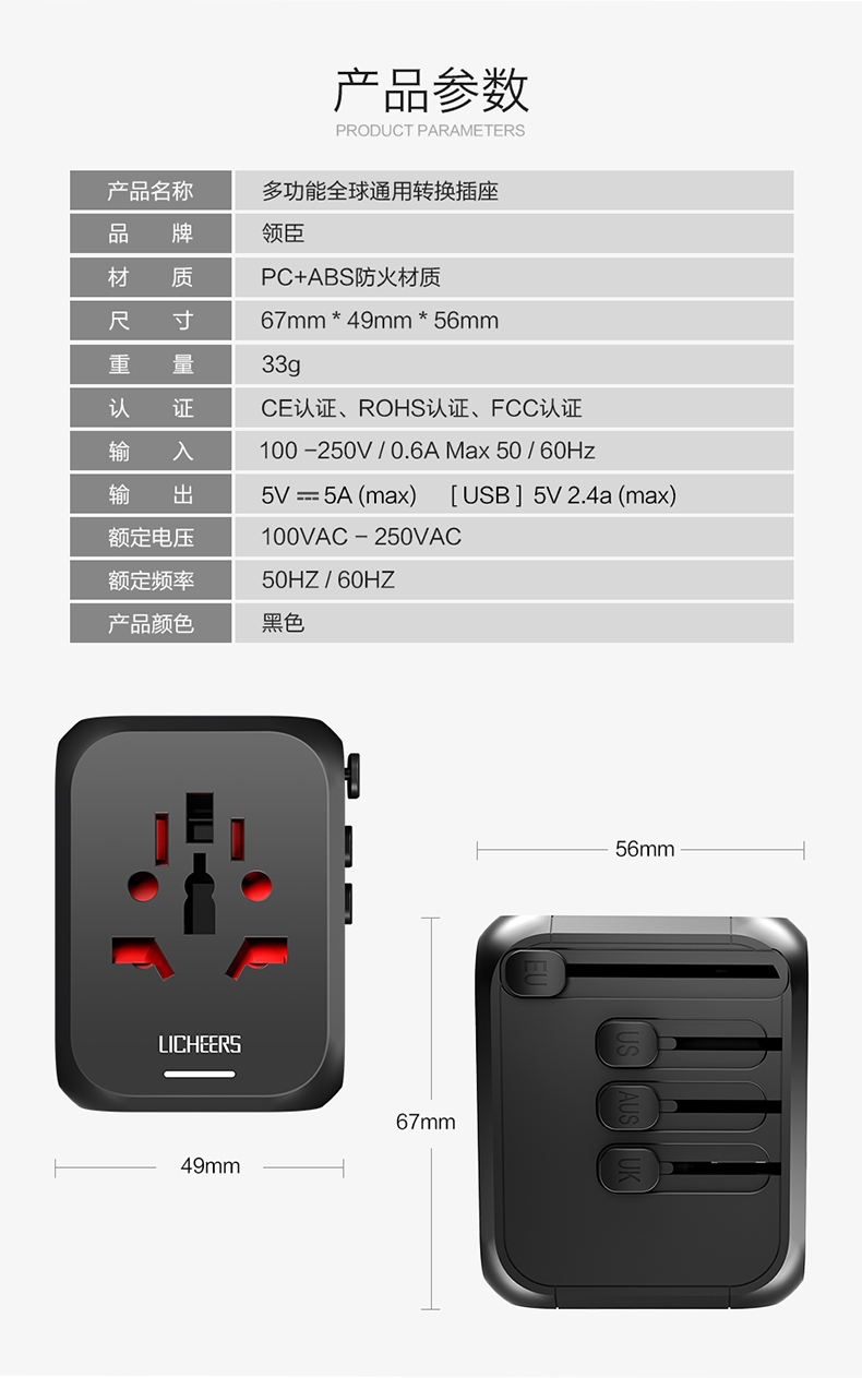 產品名稱 多功能全球通用轉化插座