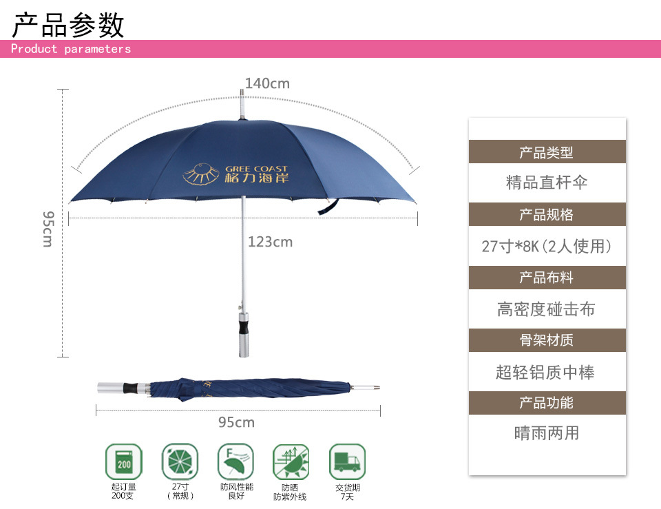 大拉簧高爾夫傘