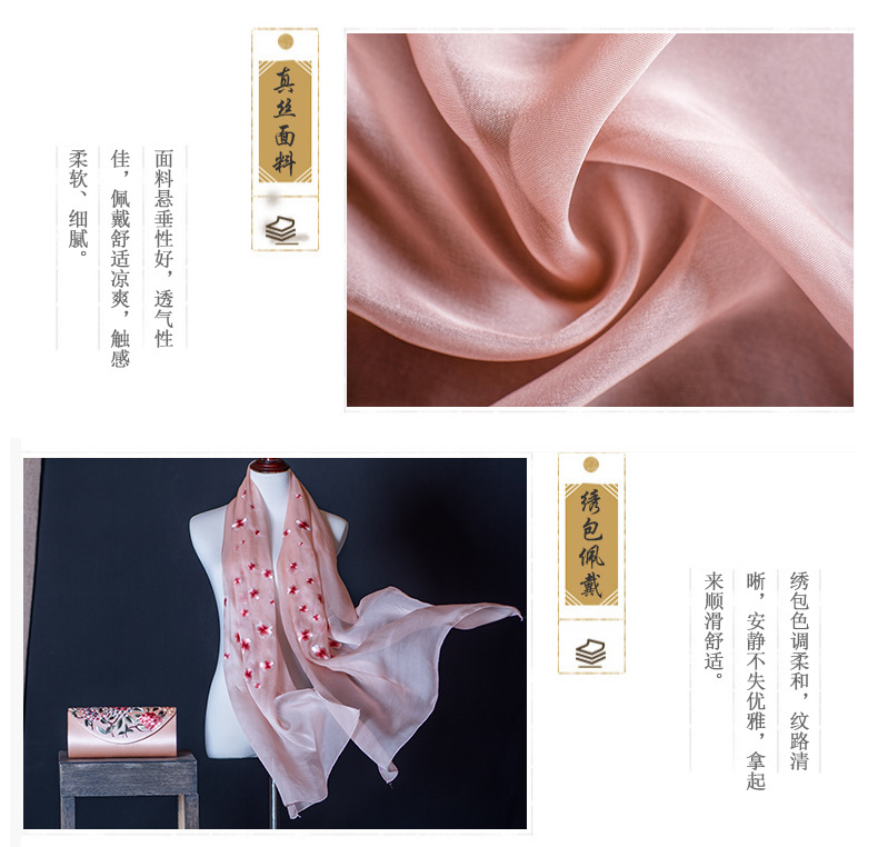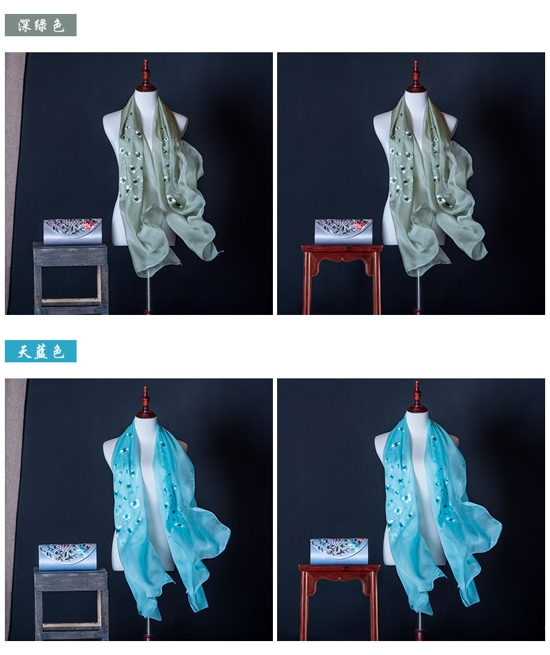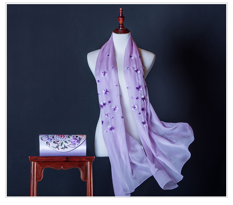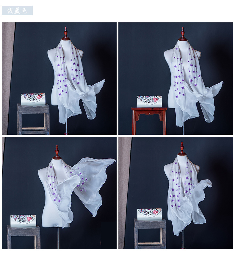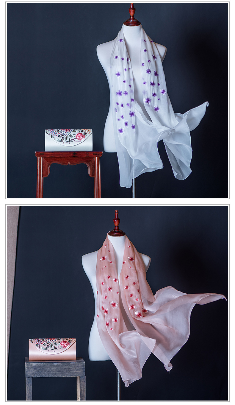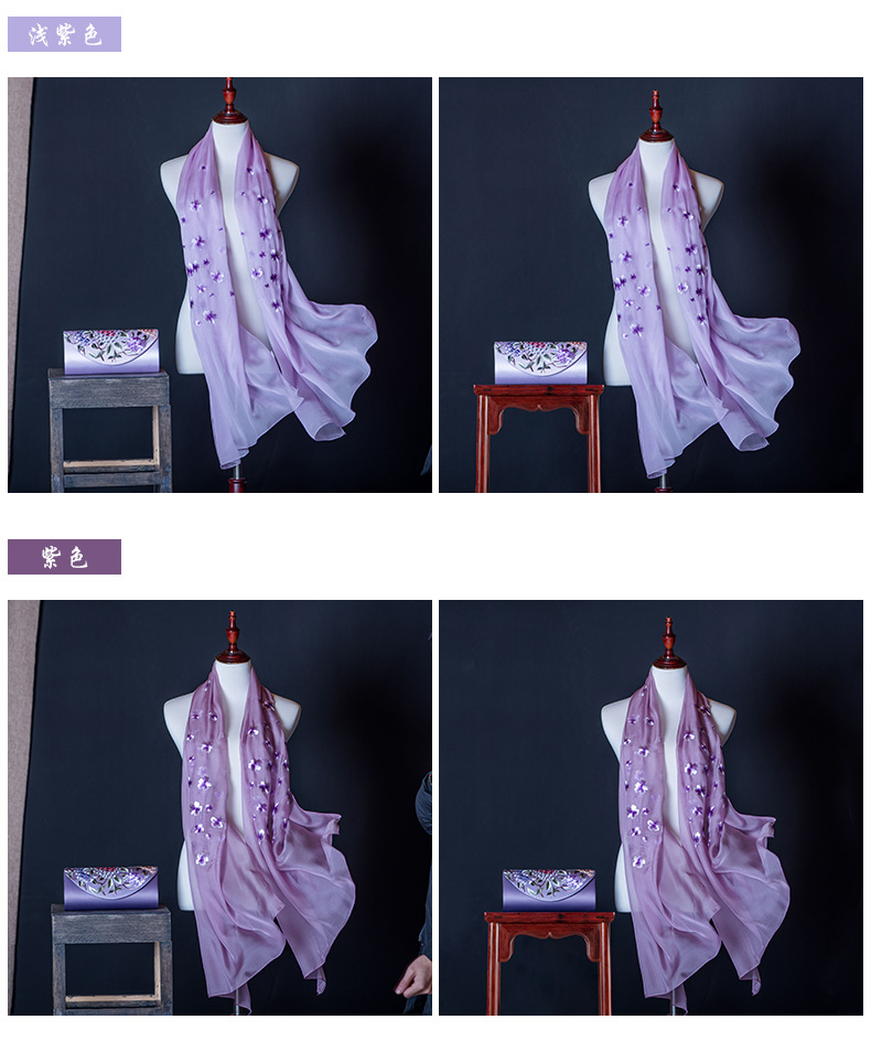 純色真絲繡花絲巾定制
