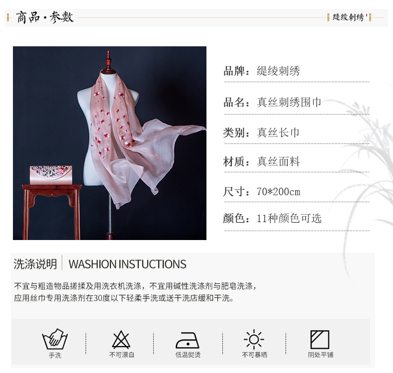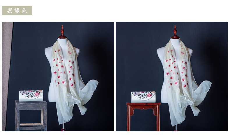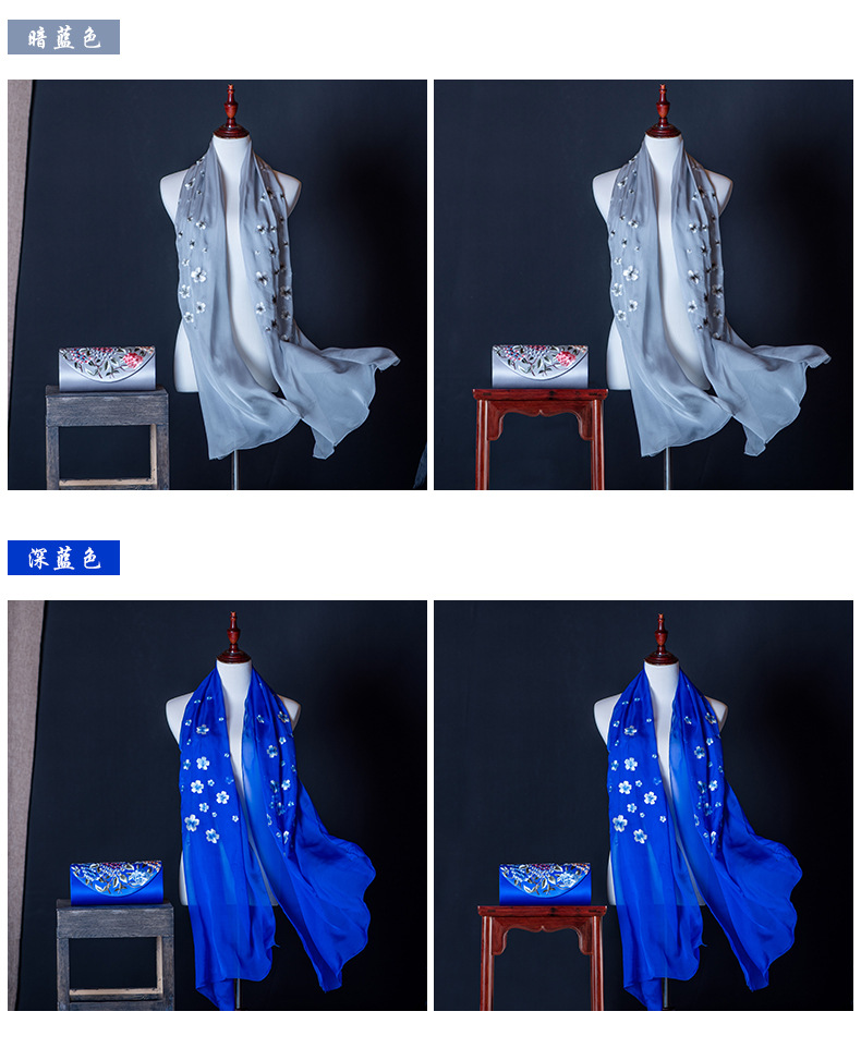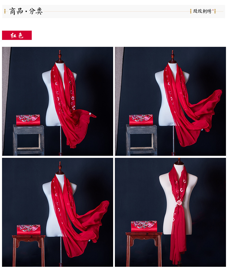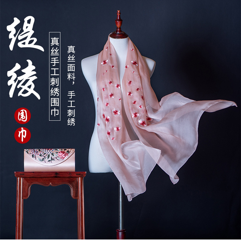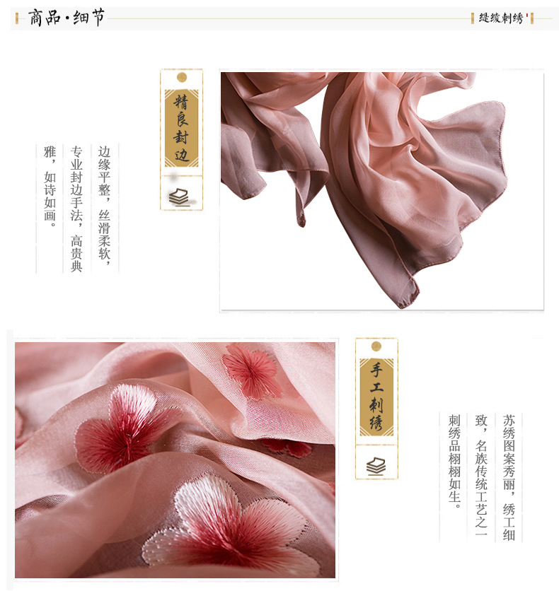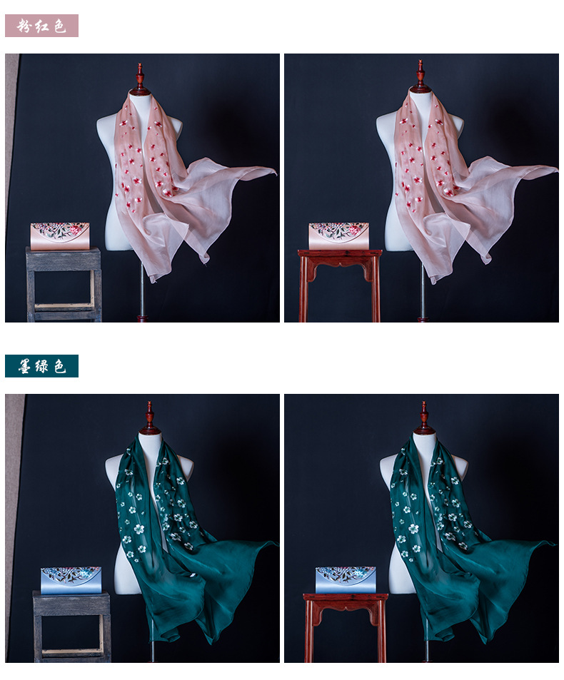 純色真絲繡花絲巾定制